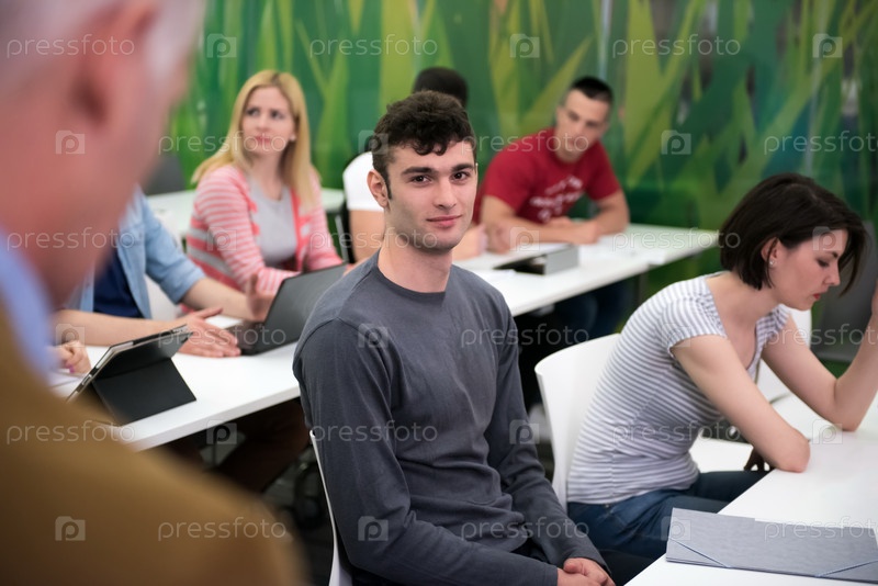 Преподаватель с группой студентов в классе