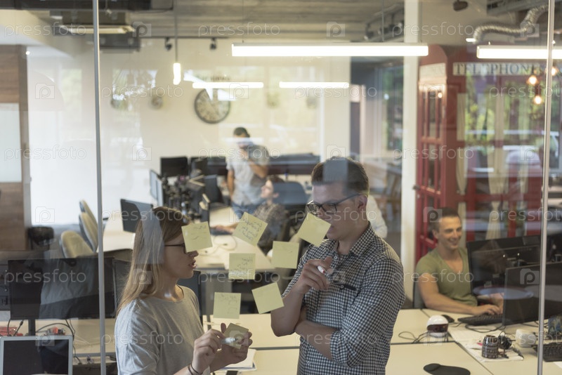 Молодая пара в современном офисе