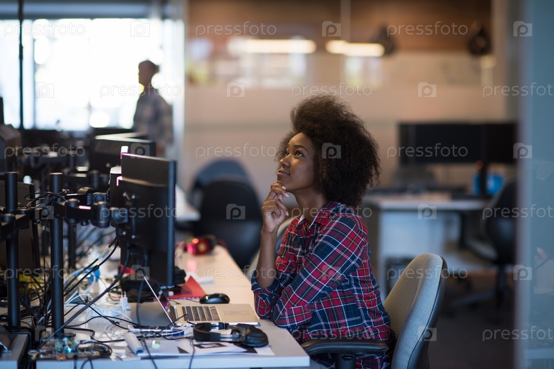 Молодая чернокожая женщина на своем рабочем месте