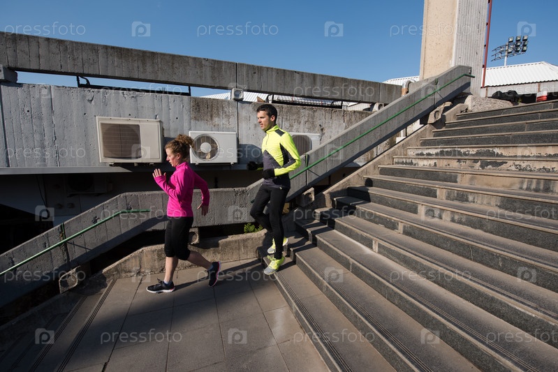 Молодая пара бегает в городе