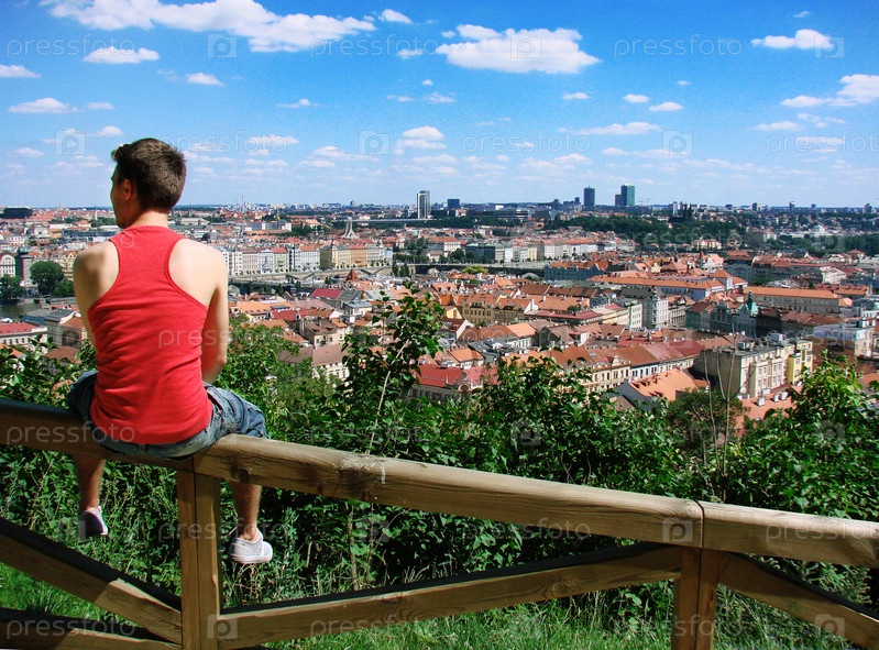Молодой парень, сидящий на заборе