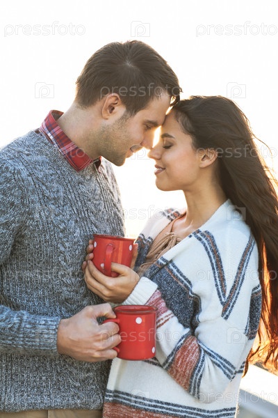Влюбленные с кофе на открытом воздухе