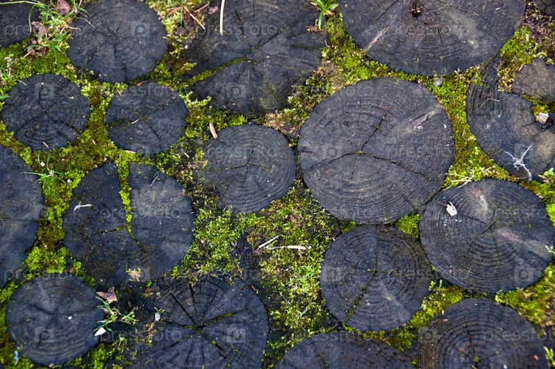 Темные стволы деревьев и зеленый мох