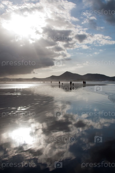 Красивый закат на пляже Фамара, Лансароте, Канарские острова, Испания