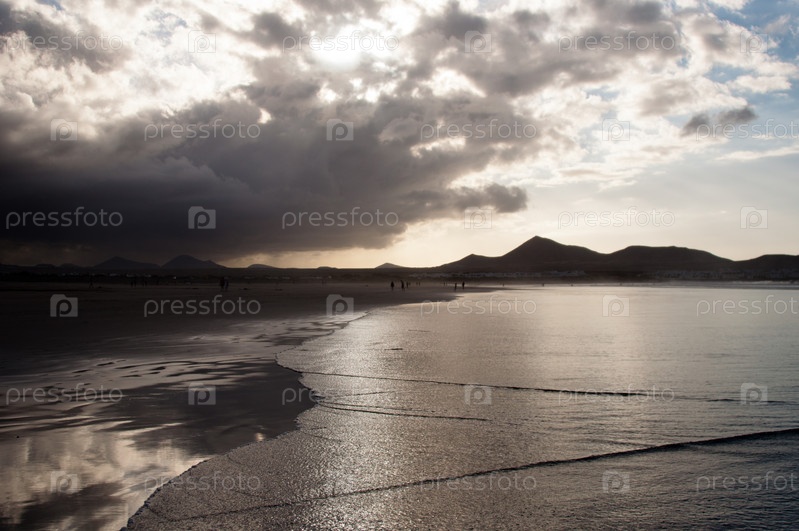 Красивый закат на пляже Фамара, Лансароте, Канарские острова, Испания