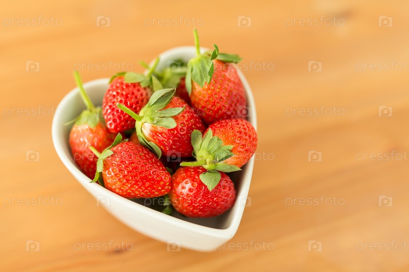 Свежая клубника в миске формы сердца