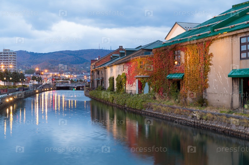 Канал Отару в Японии ночью