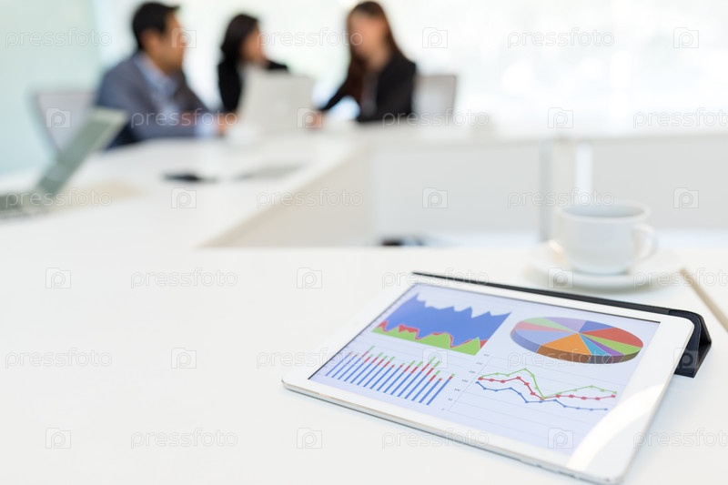 Цифровой планшет показывает диаграмму данных в конференц-зале