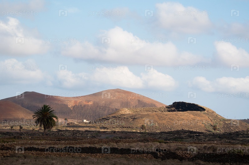 Вулканический пейзаж в национальном парке на Лансароте