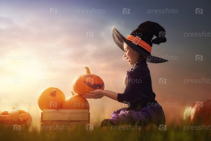 Маленькая ведьма с тыквой