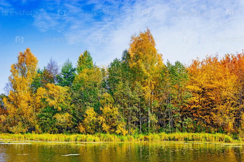 Осенний лес на берегу озера