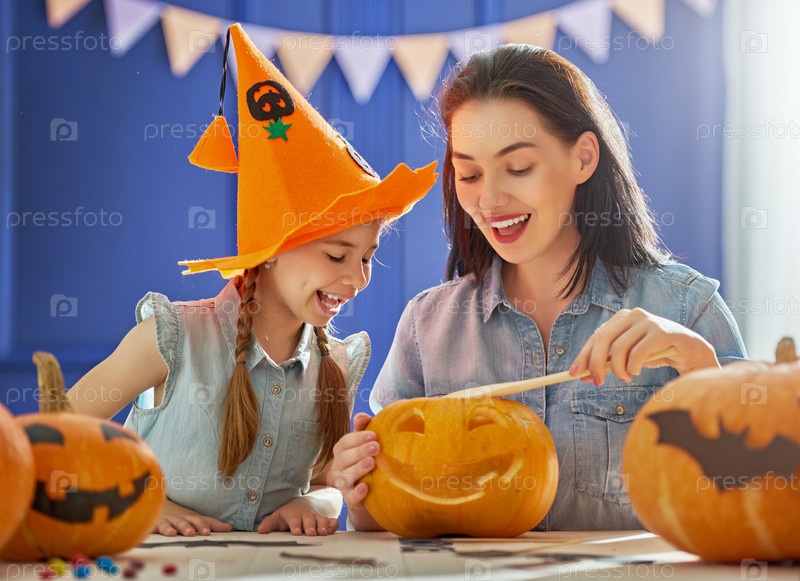 Семья готовится к Хэллоуину