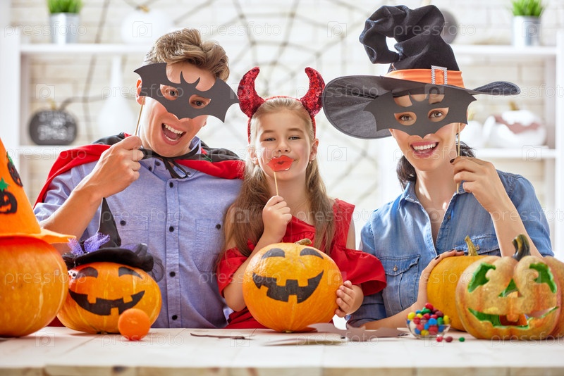 Семья готовится к Хэллоуину