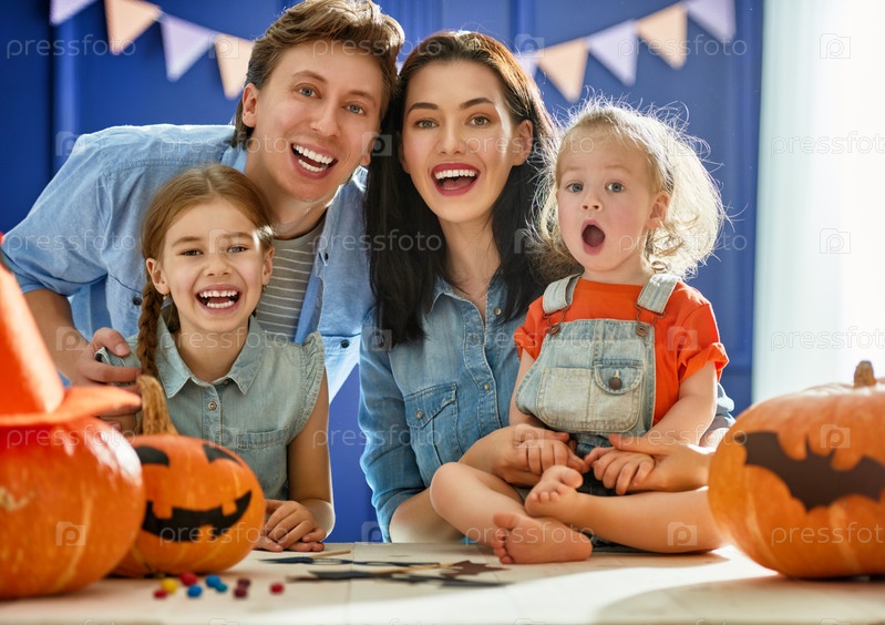 Семья готовится к Хэллоуину