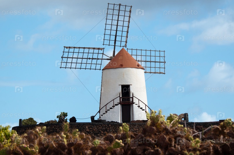 Ветряная мельница на острове Лансароте, Канарские острова, Испания