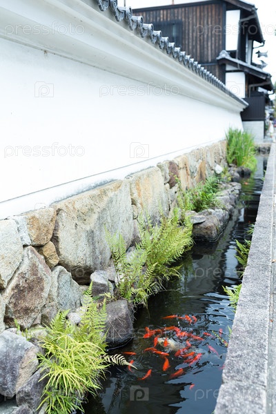 Кои рыбы в пруду на улице