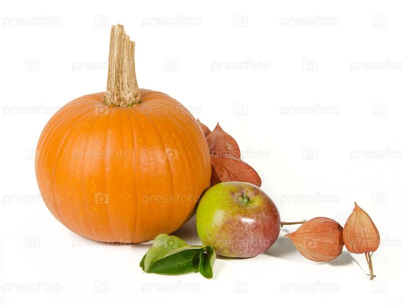 Тыква, яблоко и физалис