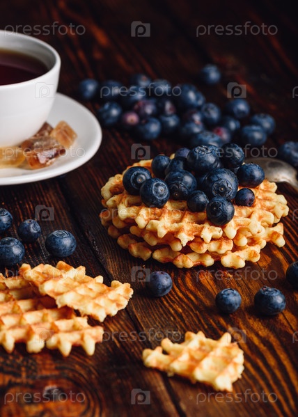 Бельгийские вафли с голубикой и чаем
