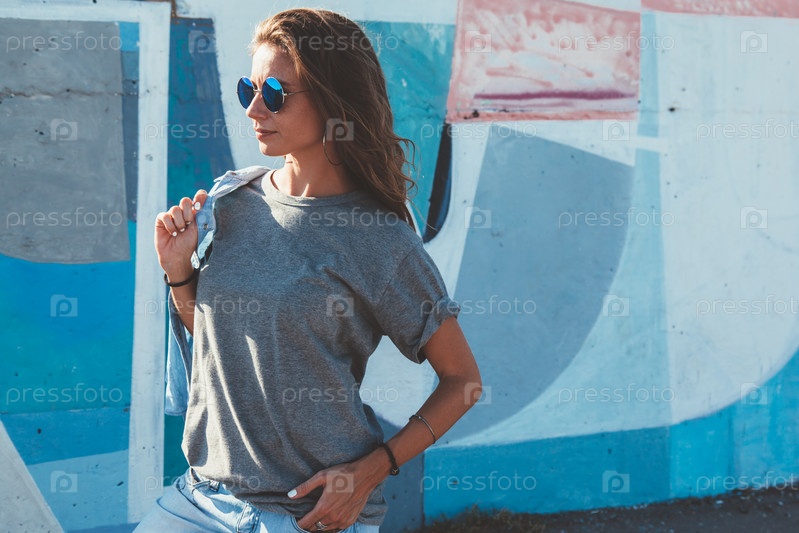 Стильная красивая женщина у стены