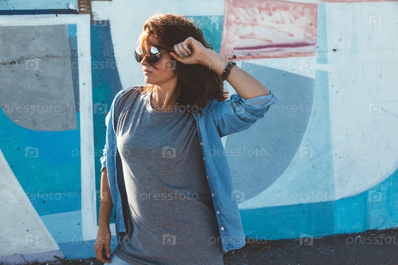 Стильная красивая женщина у стены