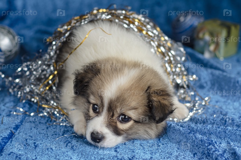 Маленький щенок на синем фоне