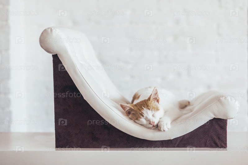 Кот спит на мягком диване