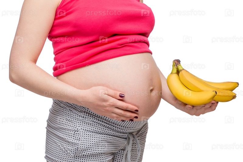 Спелые бананы в ладони беременной женщины