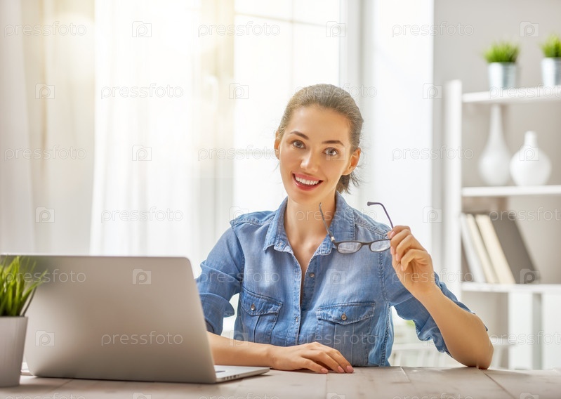 Красивая девушка за ноутбуком