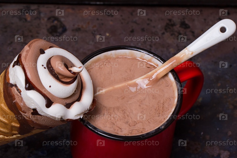 Вафельный рожок с шоколадным мороженым и расплавленным мороженым
