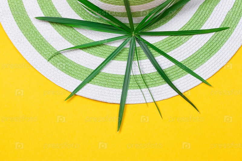 Пляжная шляпа и кокосовые листья