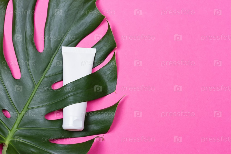 Косметический контейнер с зелеными листьями