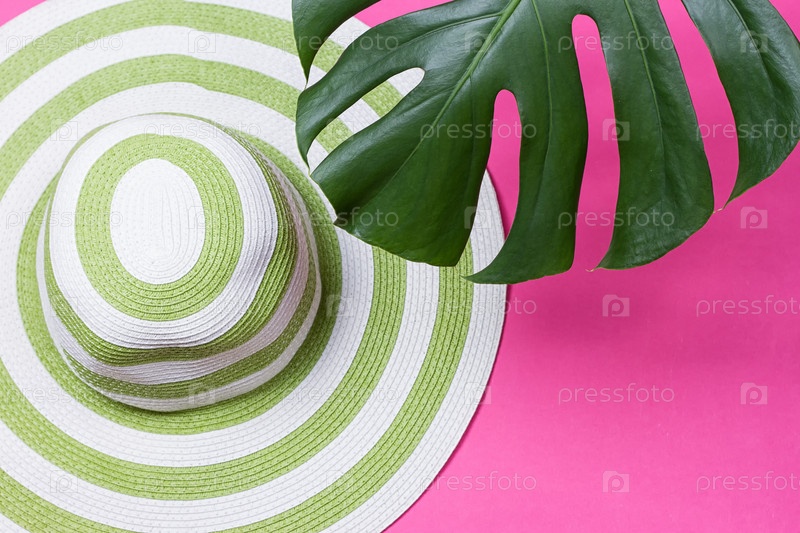 Зеленый лист с соломенной шляпой