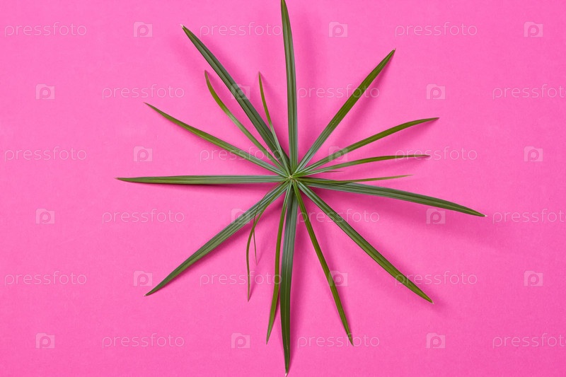 Тропические листья на розовом фоне
