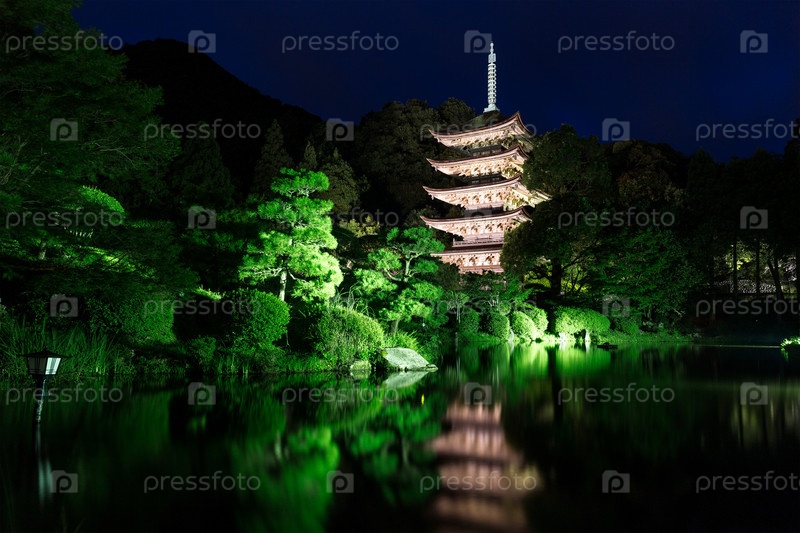 Ририкоджи-пагода в Японии ночью