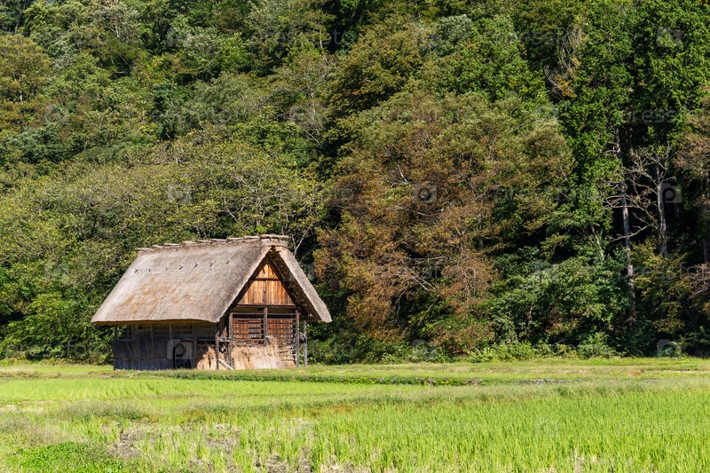 Традиционный японский старый деревянный дом в лесу
