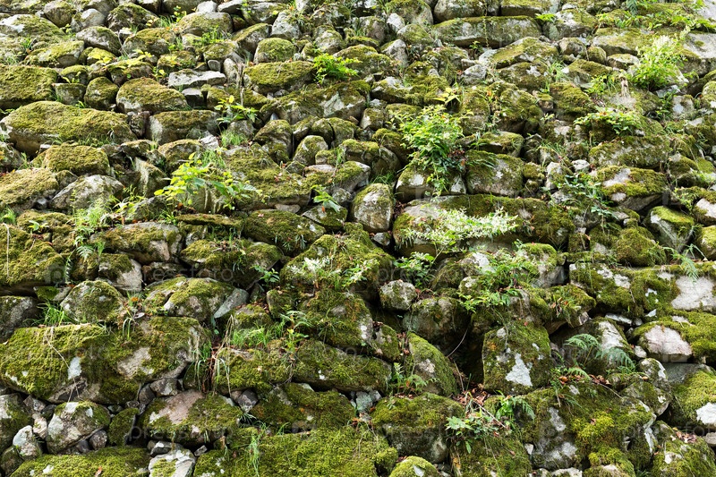 Старые каменные стены со мхом и лишайником