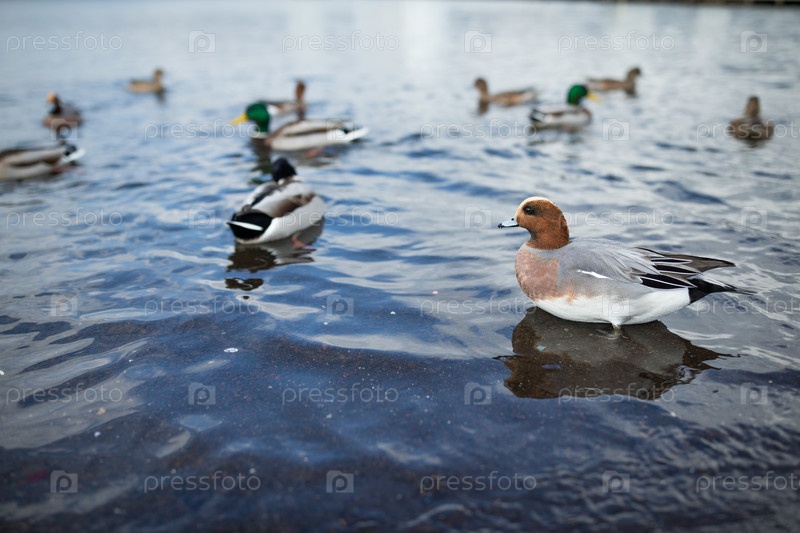 Группа уток на озере