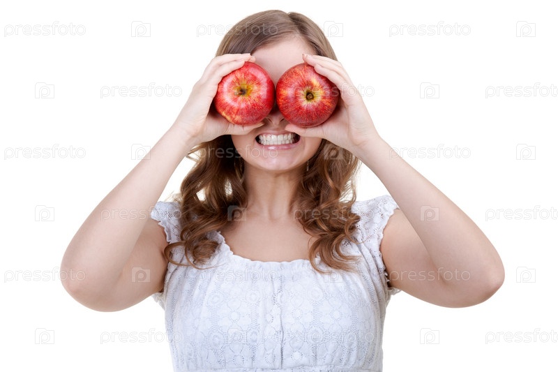 Молодая женщина с яблоками