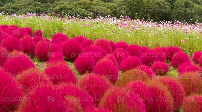 Бассия веничная и цветы космос