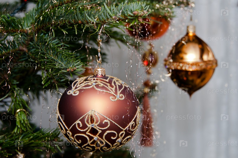 Рождественские шары на ветке