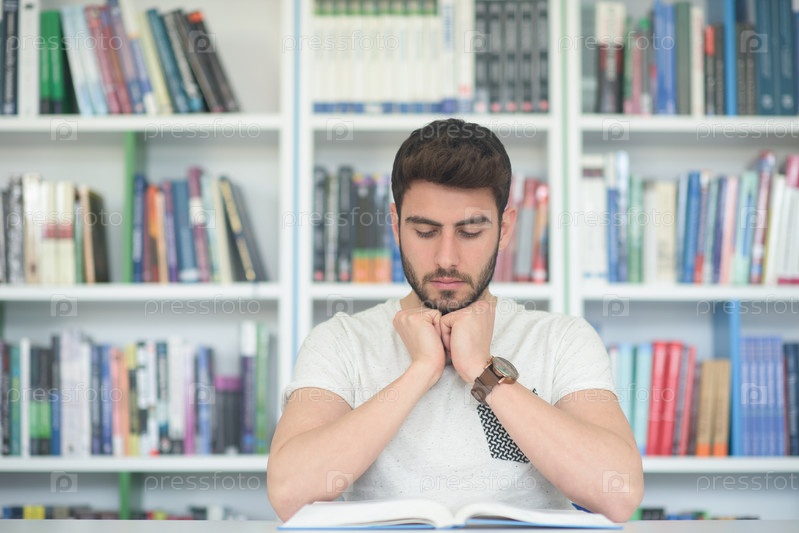 Студент в школьной библиотеке