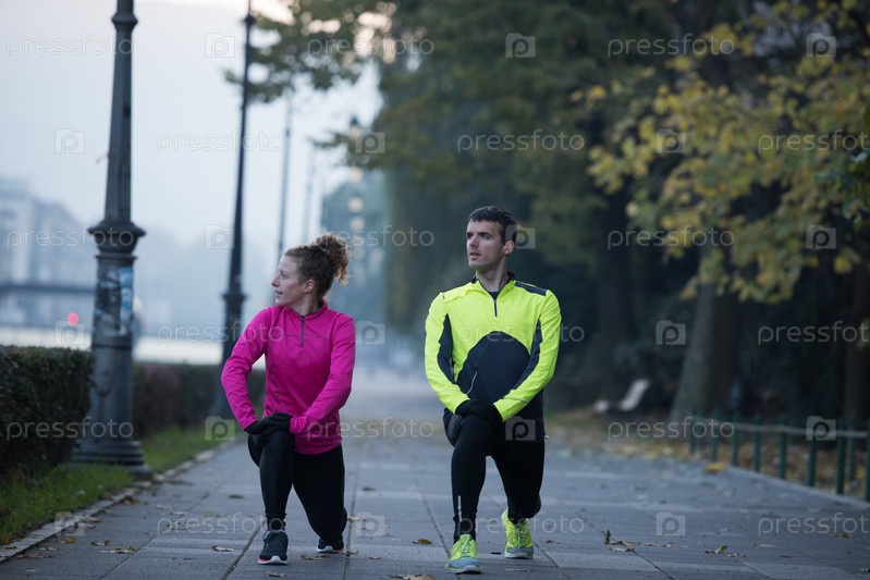 Пара разминается перед бегом
