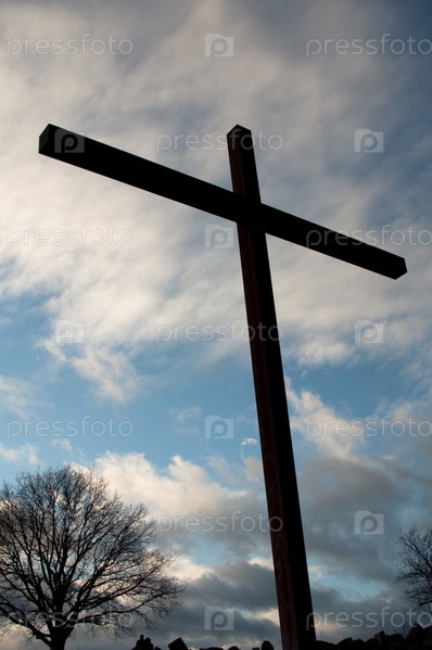 Христианский крест на фоне облачного неба, гора Биркенкопф в Штутгарте, Германия