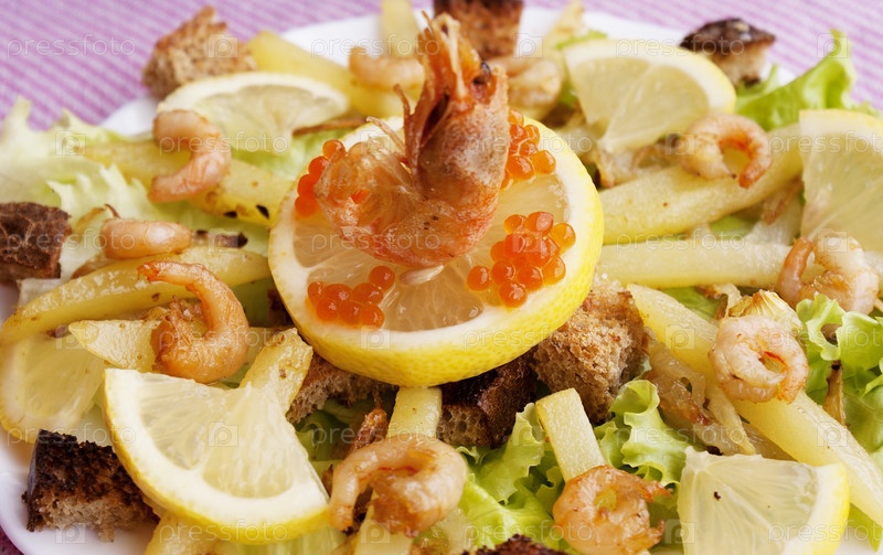Креативный салат-ассорти с морепродуктами и свежими овощами