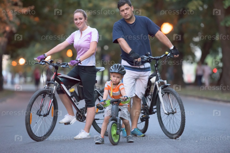 Молодая семья с велосипедами