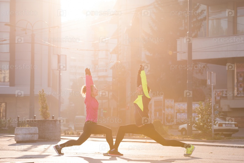 Пара разминается перед бегом