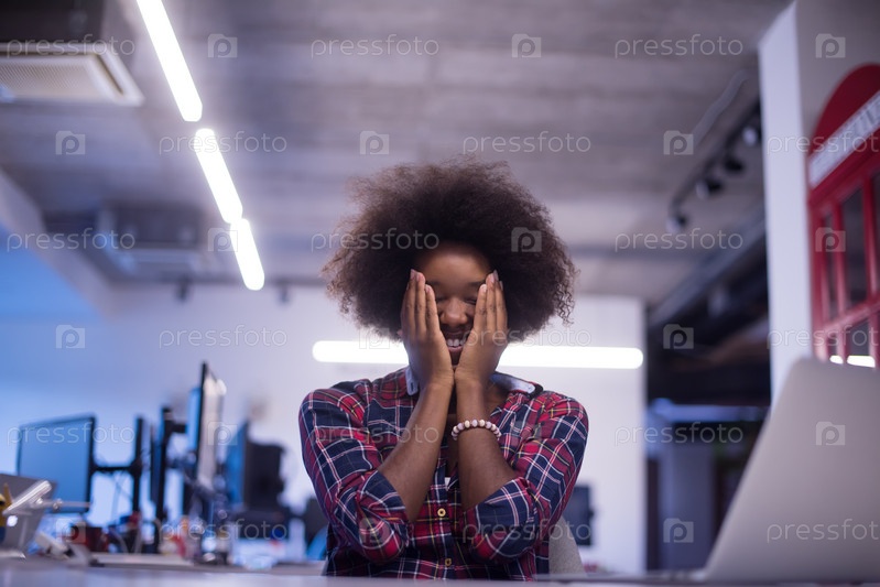Счастливая девушка в офисе