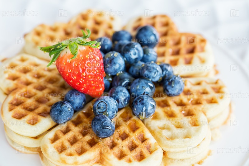 Вафли с черникой и клубникой