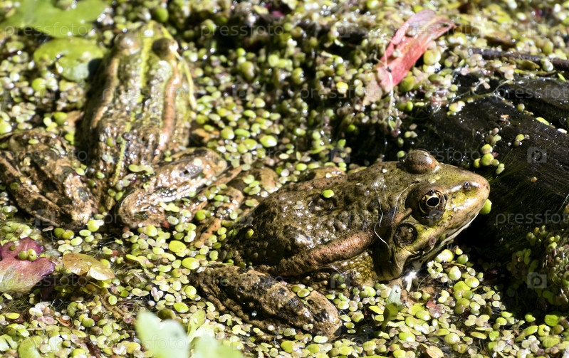 Зеленые лягушки на пруду