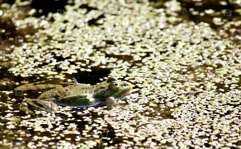 Зеленая лягушка на пруду